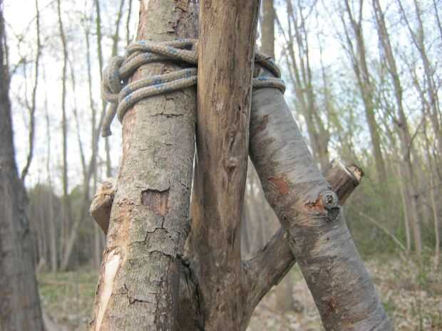 Usted querrá adjuntar los tres para que estén seguras. En este punto, una vez que el trípode esté listo, usted puede cortar la madera sobrante para hacer el trípode incluso.