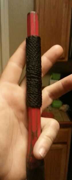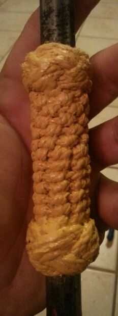 Tengo una hoz jardín que tiene una fantástica paleta japonesa con un mango de madera muy suave. Luego el mango se rompió mientras cosecha de plátanos. Que tenía que hacer algo rápido. Y mejor que el original. Puesto que el mango de madera era demasia