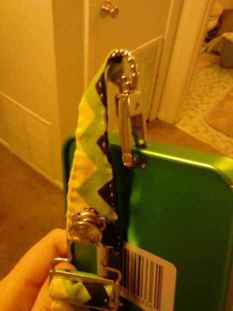 6. Si usted escogió un clip diferente, usted necesita poner en y coser en su lugar como lo hicimos antes, si tienes la clase general, acaba de poner el botón en el extremo de la tira en el centro.
