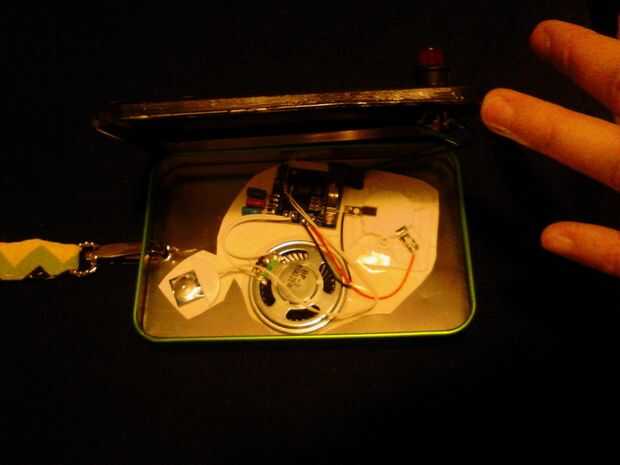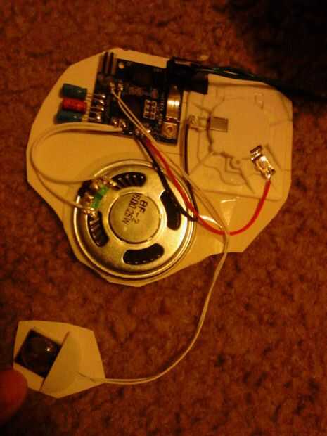 6. observe cómo funciona. Hay una pequeña tira de papel que se tira cuando usted abre la tarjeta. Cuando se tira la ficha, permite la lengüeta metálica hacer contacto con la base de la Junta y el mensaje comienza a jugar.