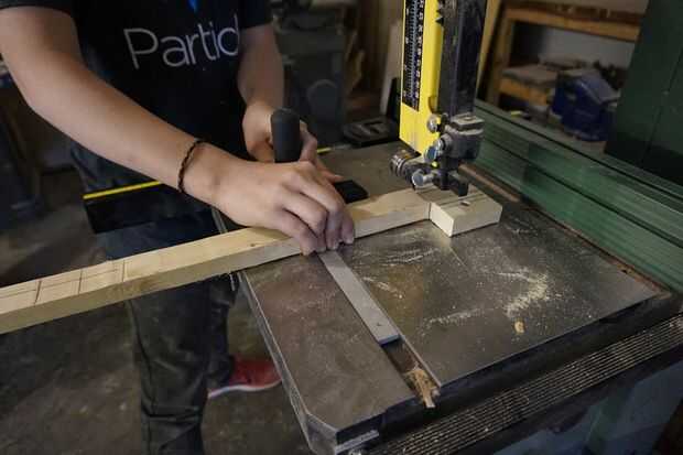 Cortar la madera con su método preferido, como una sierra de cinta tronzadora o sierra de mano.