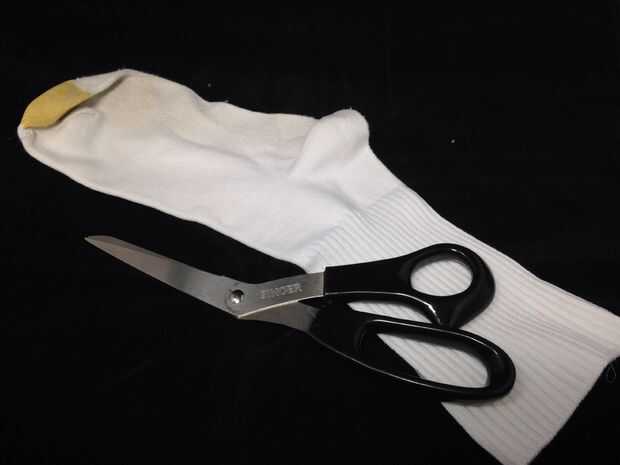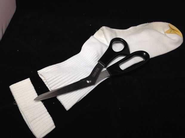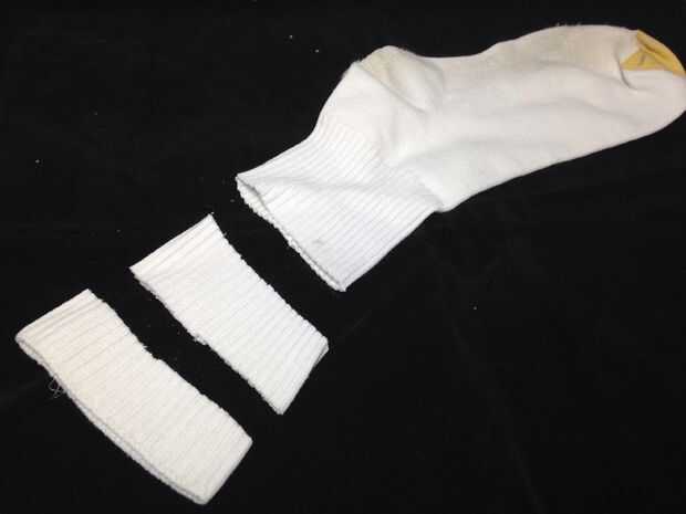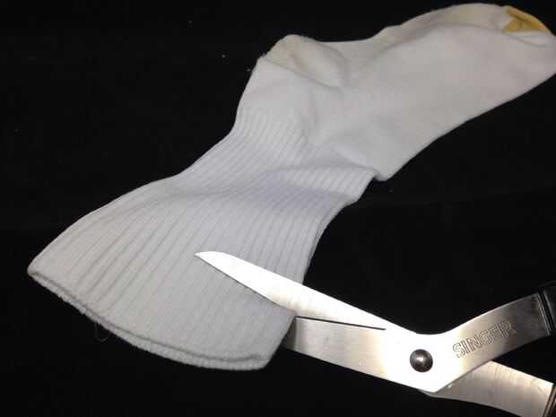 En primer lugar, tomar uno de tus calcetines y agarrar un par de tijeras. A partir de la parte superior del calcetín, corte tiras rectas en paralelo a la abertura del calcetin. Estos deben ser aproximadamente una pulgada de ancho. Un hueso de la cuerda de perro, sólo tiene dos de estas tiras, que te estoy llamando "Calcetín Scrunchies" para mayor comodidad. Si usted está haciendo solamente un hueso de la cuerda, meta el resto de este calcetín de distancia hasta su siguiente esfuerzo de cuerda de perro. Sin embargo, si está haciendo varias cuerdas de una sola vez, usted puede seguir cortando Scrunchies calcetín de este calcetín.