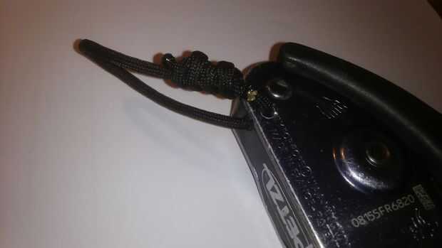 3. luego perforar la parte de plástico inferior del grigri, se puede ver en las imágenes, yo no he perforado el segundo agujero con precisión. Todavía funciona.