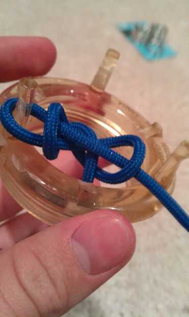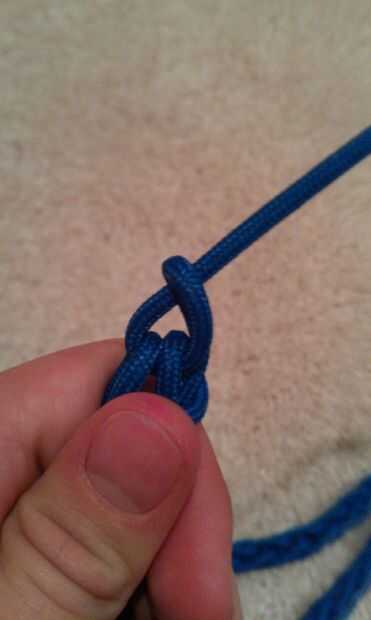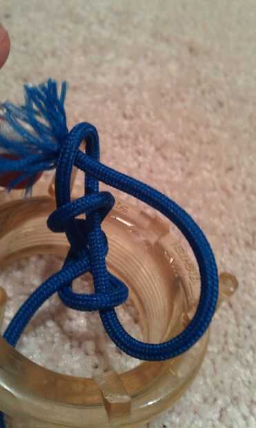 Un nudo de cuerda paracord de dos hebras