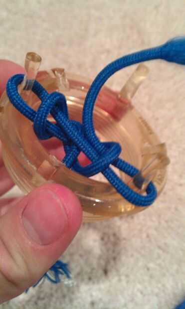 Cuerda paracord cuadradosPaso 1: Tomar en 57 de paracord. cortar por la mitad y sacar la cadena internaPaso 2: En una cuerda de encontrar el centro y atar un lazo en ella como esta.Paso 3: Sosteniendo el lazo hacia abajo coloque el otro cable en la s