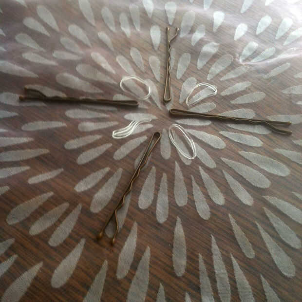Primero, reúna los suministros: en este caso, sólo usé horquillas, elástico del pelo claro y un par de tijeras especiales para bebés.