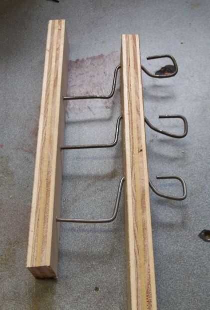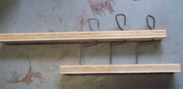 - Empuje el segundo pedazo perforado de madera sobre las varillas de doblado de 90 grados.