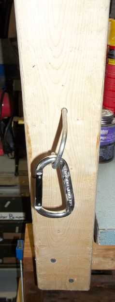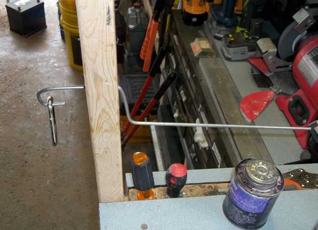 - Doblar la varilla de metal en un shap de gancho y lo puso a través del orificio.