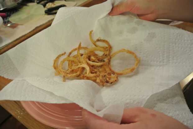 Si las cadenas de cebolla están pálida y húmeda tu aceite es demasiado cool.