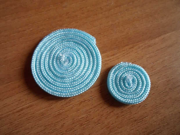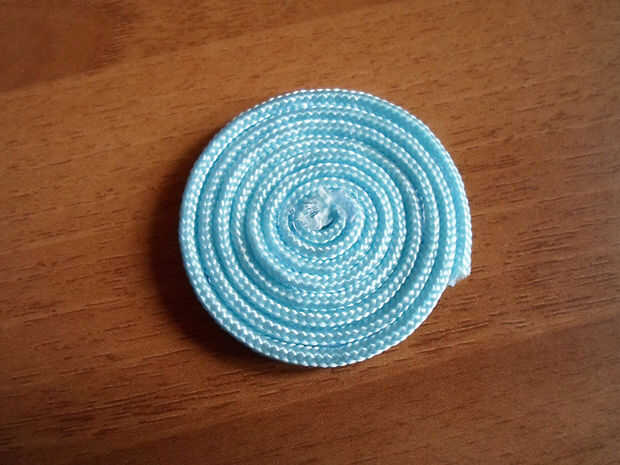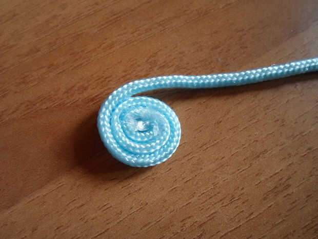 Hacer rondas cerca de 9 y luego cortar el cordón y pegar su punta a la bobina.