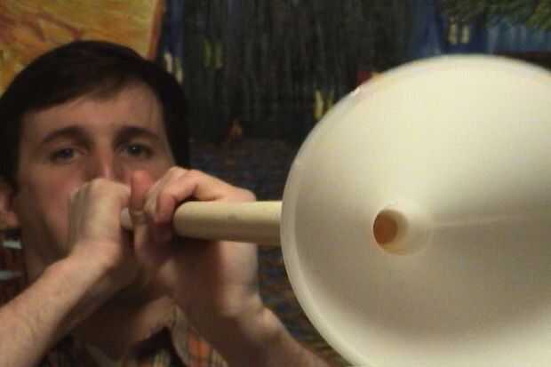 También experimenté con montaje de un tubo PCV en otro para hacer algo similar a un trombón. Si vieron el video, estoy seguro que quedaron muy impresionados con mi interpretación de la estrella Spangled la bandera que jugué en este instrumento.