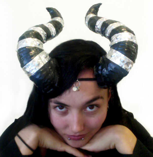 mi hija quería cosplay forma demonio (Oni) de un personaje de anime.  A diferencia de los cuernos en un demonio bíblico/tradicional, ella necesita ampliar horizontal de su frente.  Eso significaba que tenían que ser tan ligero como sea posible.  Disc