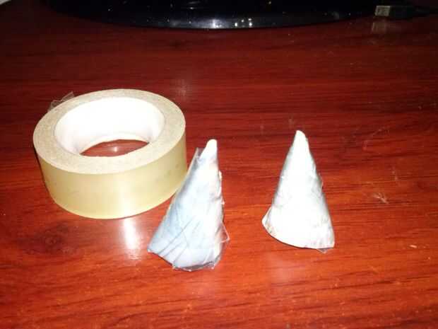 Para hacer la forma de los cuernos bastará con cortar dos pequeños conos de papel y pegarlos con celo para mantengan la forma deseada.