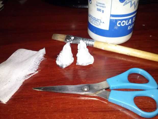 Utilice el pincel mojado con pegamento formando grumos que dan la textura de los cuernos de hueso.