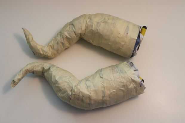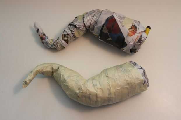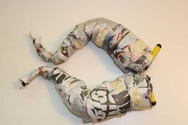3. Una vez totalmente han envuelto en periódico, doblar el envuelto en periódico ligadura en forma de cuernos-como formas. Agregar más periódico a forma según sea necesario.