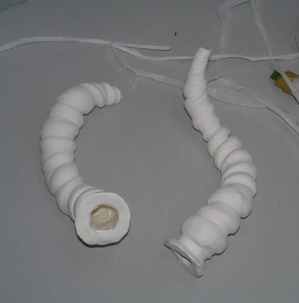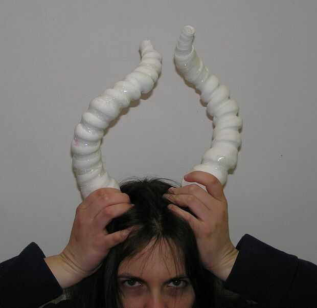 Este método resulta en cuernos, que son tan light, pero definitivamente no tan fuerte como los de nuestra anterior ' capaz de. Pintura estos cuernos con pegamento de espuma, o una mezcla de pegamento de espuma y pegamento PVA, les hará un poco más fuerte. Manténgalas cortas; no más de estos. Si quiere cuernos largos con más rizos, pruebe nuestro instructivo.