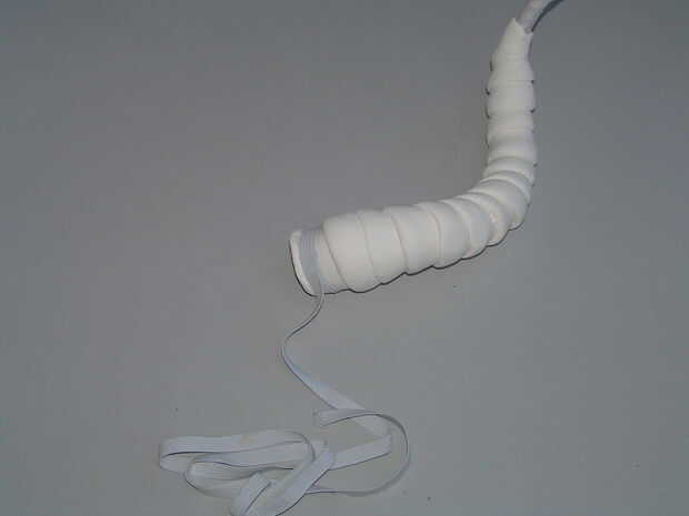 Continúe envolviendo el elástico en la parte superior de las líneas de coincidencia, hasta la punta del cuerno.
