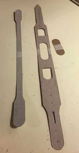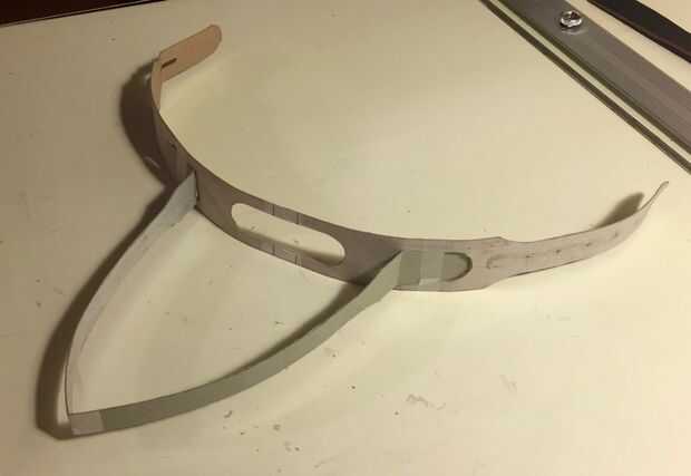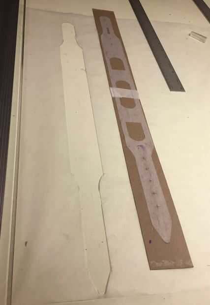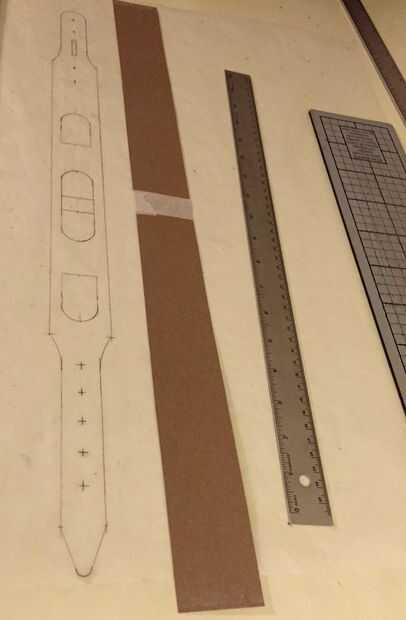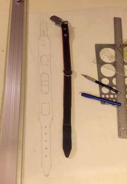 Usé el otro collar para referencia de longitud y donde deben ir las cosas como los agujeros. Hice el nuevo collar más ancho, excepto en la parte al final que pasará a través de la hebilla y el otro extremo que sujeta la hebilla de sí mismo. La parte más ancha es de 1 ½" gruesos y las piezas estrechas son 1" de espesor.