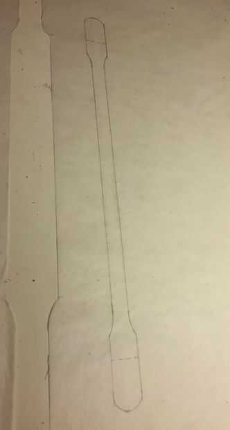 A continuación hice un patrón para la manija. Aquí sólo tienes que averiguar lo que más te guste. Yo estaba parado al lado de nuestro perro y acaba de ajustar a cualquier longitud me sentí cómodo con. Sin embargo, he visto algunos que tienen un lazo mucho más pequeño. Es preferencia puro y la belleza de la mano, llegar a ajustar quieras . Es la parte más ancha 1" de grueso y la parte más estrecha es ½" de espesor.