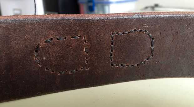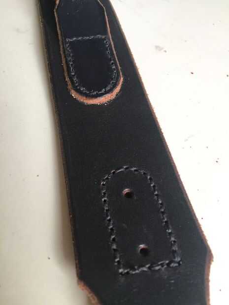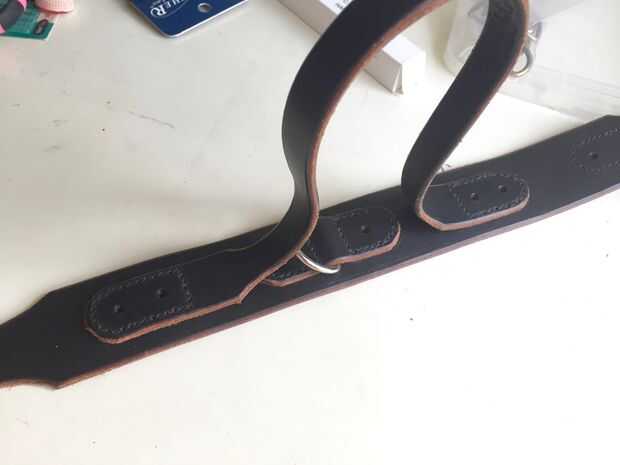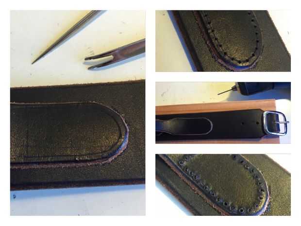 Mientras trabajaba en el collar que decidí añadir más remaches para apoyo adicional, así que después terminé coser, marcado y perforado los agujeros adicionales como se muestra en las fotos.