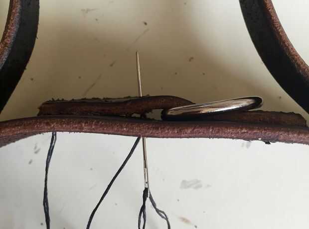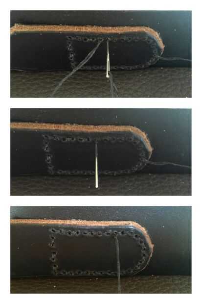El hilo que utilicé es de color negro, encerado de nylon. Realmente era bastante gruesa, así que tuve que tirar por la mitad para caber aunque los orificios. También, mi costura regular agujas donde demasiado grande, así que se aventuró a la tienda de artesanías y encontré tapicería agujas que funcionado de maravilla. Son más cortos, pero embotado en la punta, al igual que las agujas para cuero regular.