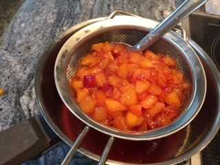 Colar la carne de la fruta del agua. Puede utilizar el agua filtrado para hacer gelée, más o menos.