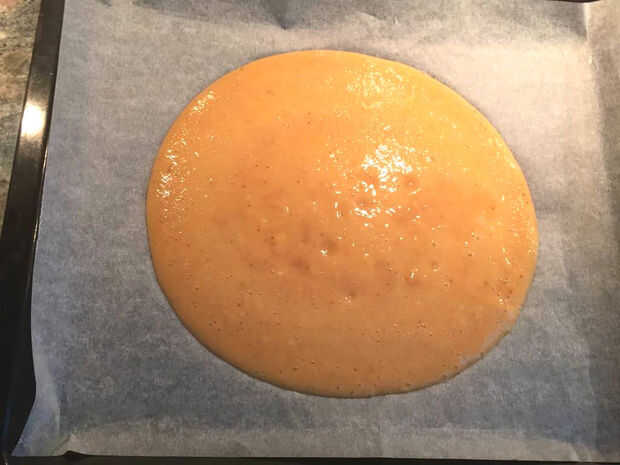 Vierta el puré de la fruta en el papel.