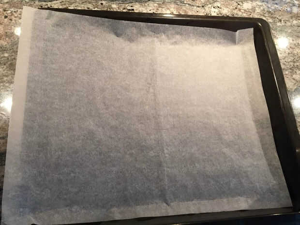 Línea de la bandeja para hornear con papel pergamino.
