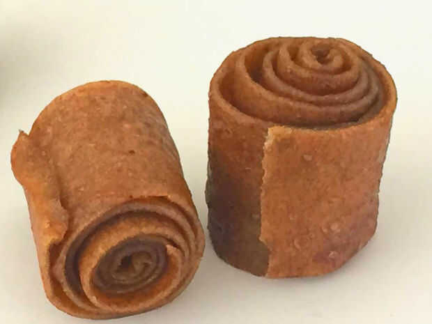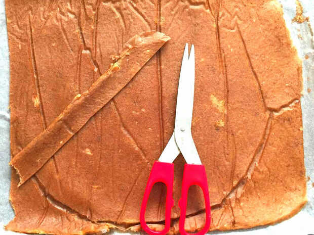 Comer enseguida o si desea utilizar en pasteles u otras recetas que piden para el puré de calabaza los rehidratar empapando cada rodillo de cuero en el agua lo suficiente para cubrirla.