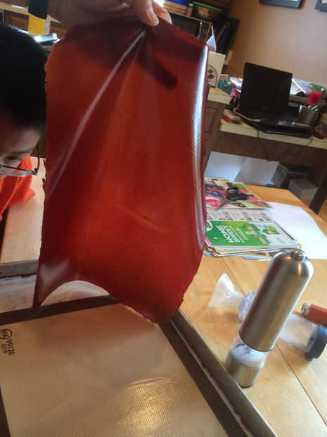 Ta-da! Una hoja de cuero de fruta lista para ser cortada en tiras
