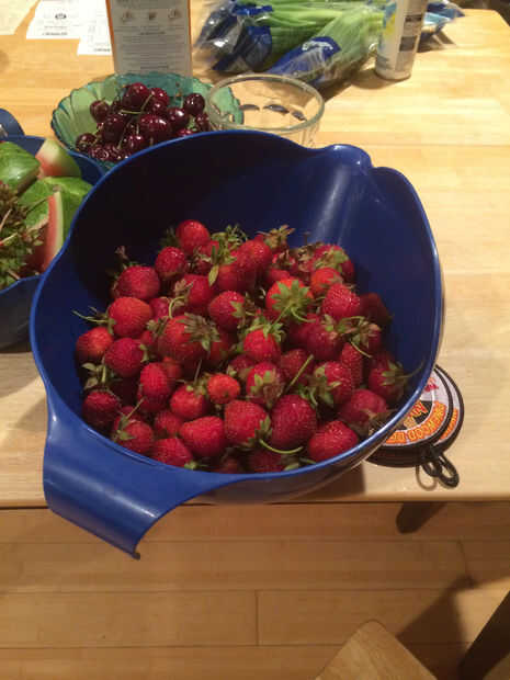 Elegí fresas frescas para este lote. Empecé con un cuarto de galón y medio de fresas.
