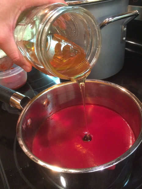 Cuánto edulcorante depende de cuán dulce es la fruta y su sabor. Puede utilizar granulada azúcar, miel, stevia o agave néctar. He añadido aproximadamente 3 cucharadas de azúcar blanco, pero siempre quieren añadir algo de miel para ayudar a mantener el producto final un poco flexible. Tengo acceso a miel cruda. Así que agregué la miel después de que la jalea ha tenido oportunidad de enfriar para casi sala a temp. No quiero cocinar miel cruda.