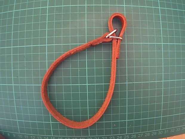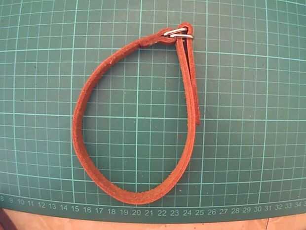 Doblar la punta de la correa hacia abajo y pasarlo otra vez pero sólo a través del anillo de la parte inferior. Esto crea un bloqueo de la fricción entre los anillos que se coloque la correa en su lugar.