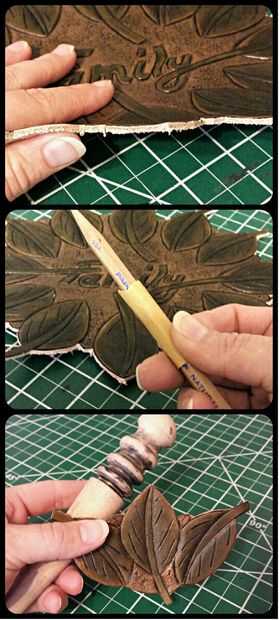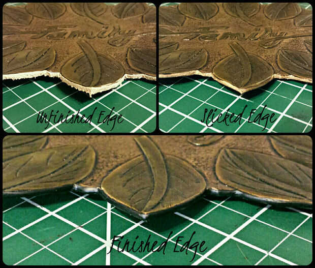Normalmente, utilizo un beveler borde de verdura curtida bordes de cuero en vez de o en combinación con el papel de lija. Sin embargo, me preocupaba que dañaría las hojas pequeñas, por lo que opté por la ruta segura, papel de lija sólo antes slicking/bruñido.