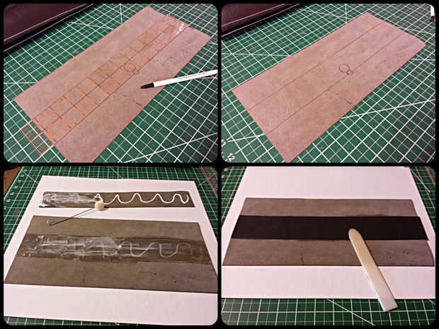 Consejos: utilice una Ralladora de hueso en su borde a arrugarse una línea en el cuero en el borde de la pieza de refuerzo plegado fácil.