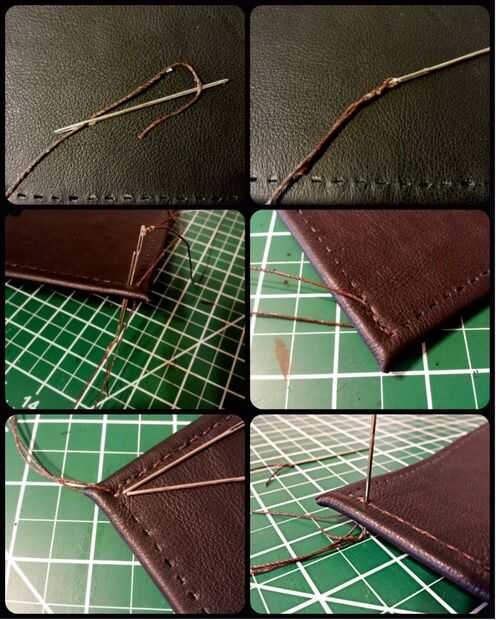 - En el último agujero, la puntada debe ser bloqueado. Simplemente puntadas en reversa a través de tres orificios previamente cosidos, tire tenso y cortar el hilo de la cerca.
