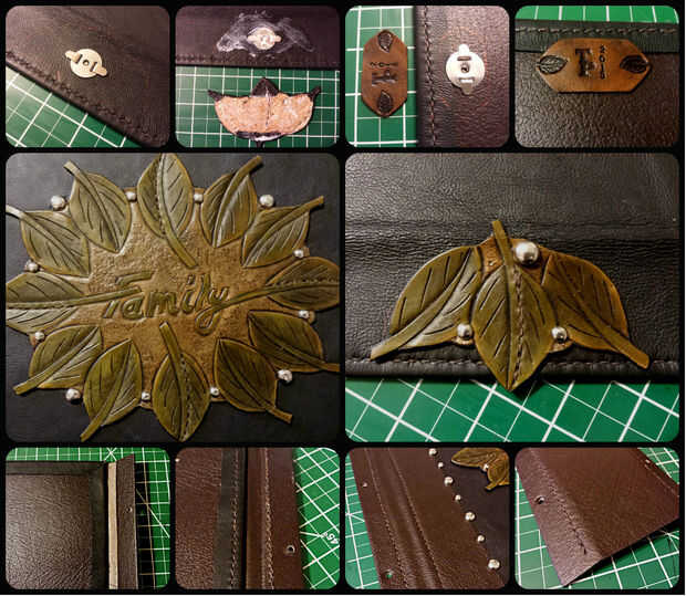 Decidí añadir los puntos adicionales más grandes en este paso a los apliques para el refuerzo. Pero también actúan como un amortiguador para proteger el cuero de los arañazos.