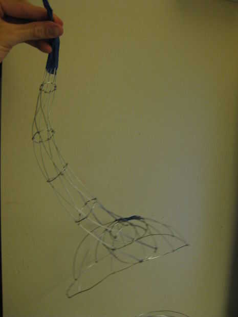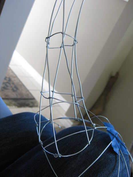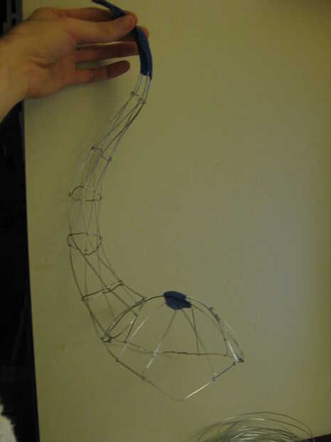 Utilice un poco de cinta adhesiva en la punta del cuerno para celebrar todos juntos mientras vas sobre la instalación de los enlaces circulares. La cinta detendrá los cables de batir todo y va en tus ojos. Curva de la corneta para una estimación aproximada de lo que estás buscando y luego envolver cada uno de los seis puestos alternadamente para cada enlace circular.