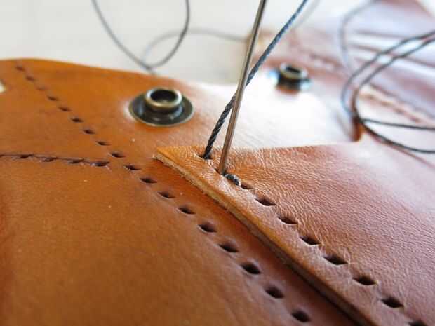 Entonces tomé una aguja cuero roscada con hilo grueso de la cera y cosidas las dos capas juntas con una puntada de silla de montar.