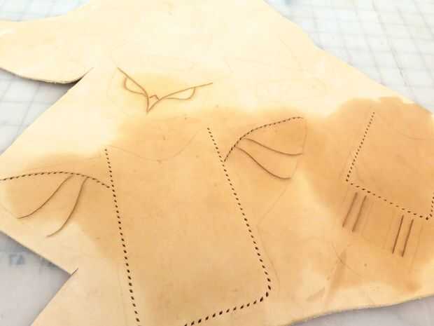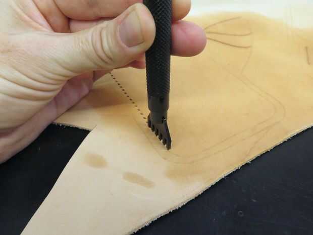 Antes de cortar las piezas, yo también perforar los agujeros de costura en el cuero con mi diamante costura cincel.