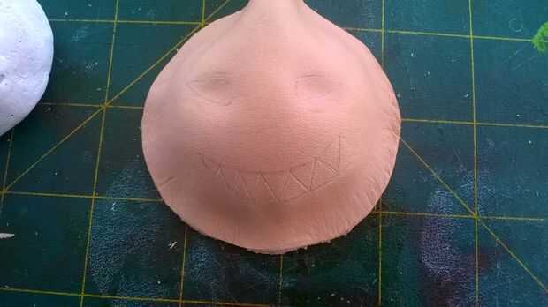 1. Empezar por el dibujante en su detalle en la piel. En este caso dibujado en la forma de ojos, la línea de los dientes y algunas líneas para el tallo de la calabaza y secciones.