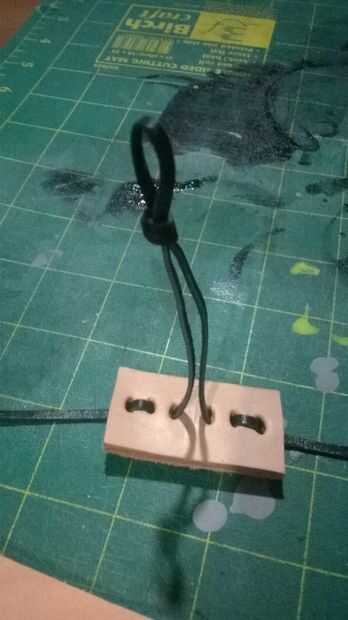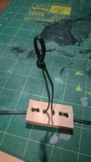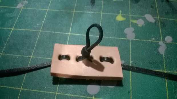 4. De la parte superior del cuero, del hilo de rosca el encaje del canguro a través de uno de los agujeros en el centro.