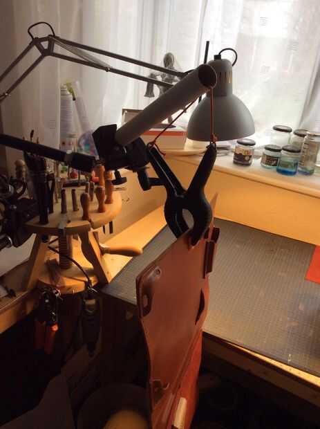 Esta vez, el cuero era demasiado grande para que jerry aparejado un bastidor con una abrazadera colgando hacia abajo desde arriba de mi cabeza para sostener la piel y dejar de entrar en mi camino.