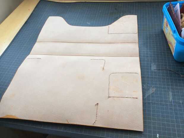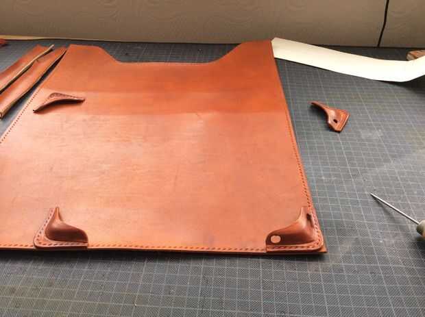 Es importante planificar los pasos te necesita en el orden exacto que necesita hacerlo, de lo contrario usted puede fácilmente se encuentra en problemas. Si no había fijado las pestañas de la esquina en esta etapa, no podré coserles, cuando habían sido cosidos a los lados y atrás. Además, necesitaban fijar antes de que el forro de gamuza fue agregado para evitar que las líneas de puntada estropeo el forro de bolsillo trasero. Al igual que yo necesita para sujeta el sostenedor de la pluma a un lado antes de ese lado fue unido.