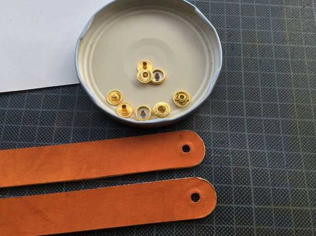 Usé dos pernos por cada popper, uno en la parte trasera de la caja para mantener la correa en lugar cuando la cubierta fue rodada para arriba, y una segunda en la cubierta sí mismo sostener la correa seguro cuando no estaba en uso.