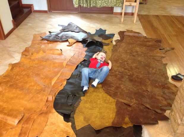 - Cuero (aproximadamente 2,5 pies cuadrados de cuero para cáscara 1 pies cuadrados de gamuza para dentro de la cubierta)