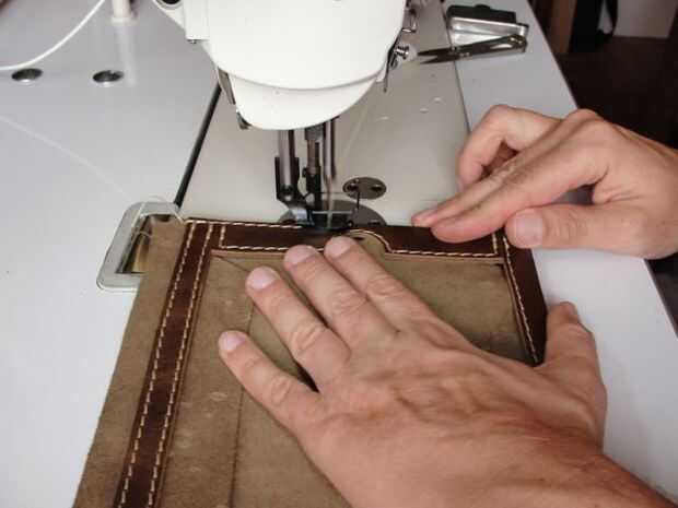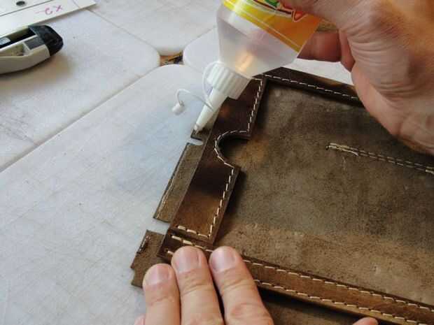 Pegar la parte delantera a la pieza posterior, teniendo cuidado de que el pegamento no squirt por los orificios de corte. Su frente debe ser ligeramente menor en altura y anchura que la parte de atrás. Esto es porque la espalda se curva alrededor de los bordes. Coser juntos y tómese su tiempo.