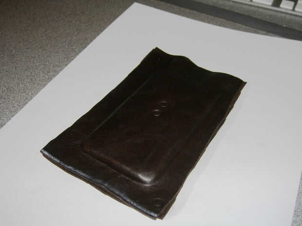 Ahora tome un objeto embotado redondo agradable, funcionará la mayoría de las cosas, utilicé un viejo ajuste de una máquina de túnel de que tenía puesta alrededor. Use esto para presionar todo el borde de su caso. El cuero mojado debe ser fácil de trabajar.