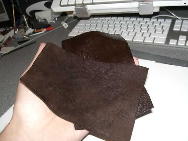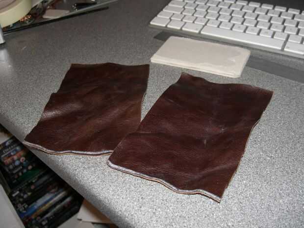 Tomar las dos piezas de cuero y remójelos en el agua, usted sabrá cuando están mojados a través como el color de los cambiadores de cuero.