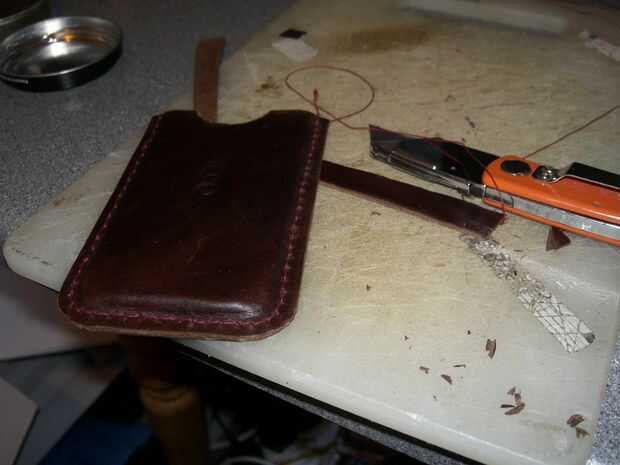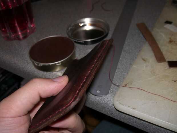 En primer lugar, cuidadosamente ir alrededor de su caja y acabado de cuero, sobre 5 mm de la puntada al corte.